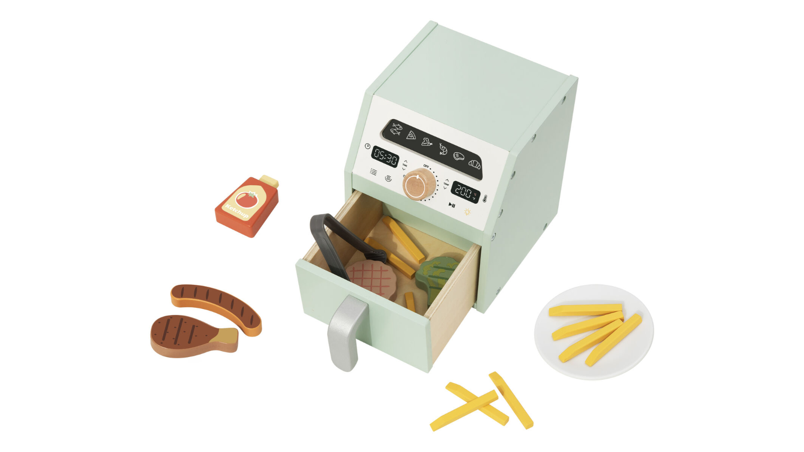 Το Air Fryer της Tookytoy είναι ένα διασκεδαστικό και δημιουργικό παιχνίδι που μιμείται την πραγματική φριτέζα αέρος, ιδανικό για μικρούς επίδοξους σεφ! Ενθαρρύνει το παιχνίδι ρόλων προσφέροντας στα παιδιά την ευκαιρία να δημιουργήσουν τις δικές τους ιστορίες μαγειρικής. Αποτελεί ένα ξεχωριστό αξεσουάρ για κάθε παιδική κουζίνα!