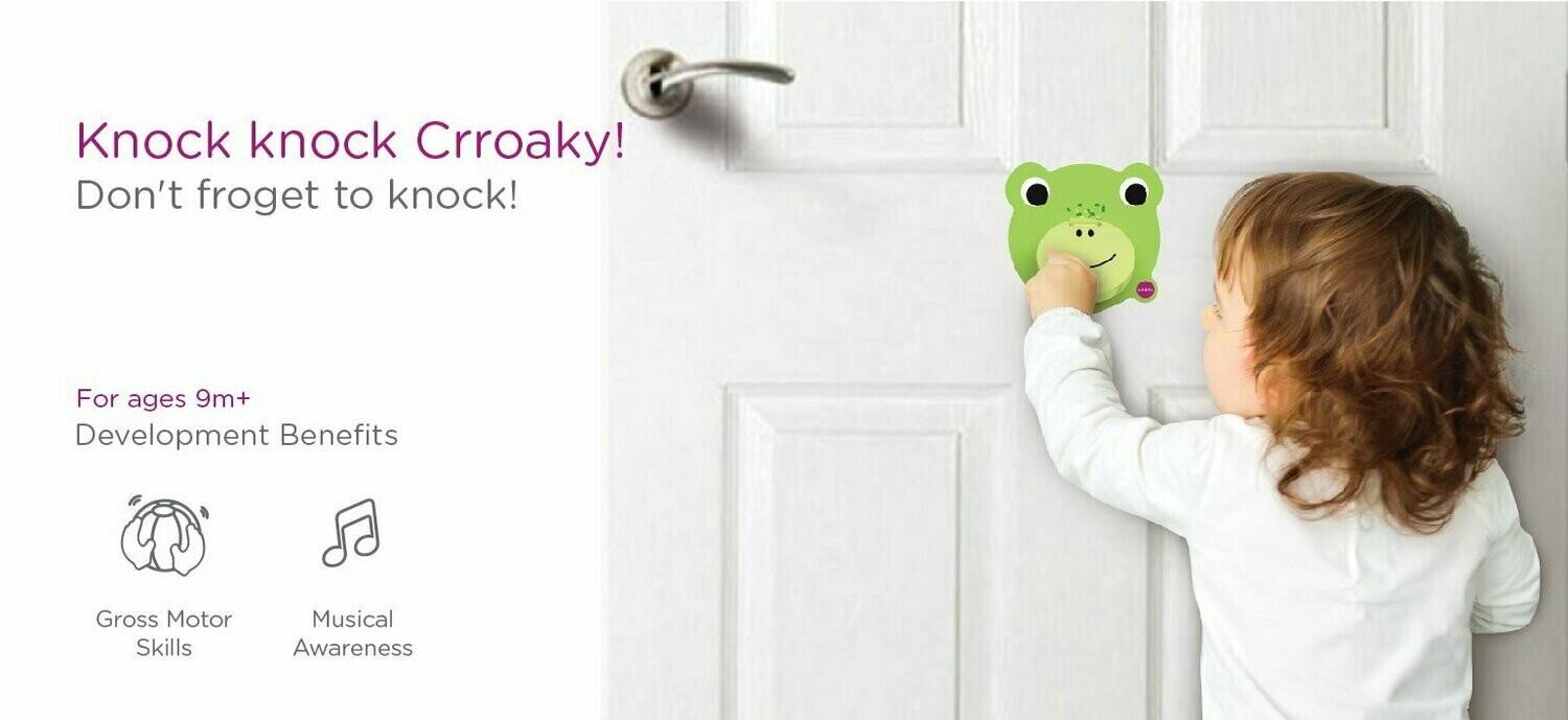 Μουσικές κλακέτες από την εταιρεία Oribel! Αυτός ο αξιολάτρευτος βάτραχος σε μορφή κλακέτας μπορεί να δώσει χαρά ως ένα εξαιρετικό όργανο κρουστών καθώς επίσης κολλώντας το με το αυτοκόλλητο του στην πόρτα, βοηθάει στο να ενθαρρύνει τα παιδιά να χτυπούν πριν μπουν. Τα έντονα χρώματα σε συνδυασμό με τον ήχο, θα δώσουν το έναυσμα στο παιδί σας να σταθεί περισσότερη ώρα όρθιο με αποτέλεσμα να δυναμώσουν οι μύες των ποδιών του. Μπορεί να κολληθεί σε διάφορες επιφάνειες και να τις μετατρέψει σε σημείο παιχνιδιού! Κολλάει και ξεκολλάει αρκετές φορές. Κολλάει σε όλων των ειδών τις λείες επιφάνειες. Δεν κολλάει σε τραχείες επιφάνειες. Oribel Greece.