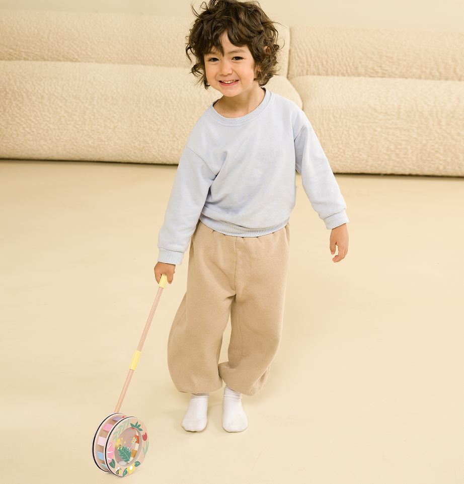Η Ξύλινη Τρεχαλίτσα είναι ένα διασκεδαστικό και εκπαιδευτικό παιχνίδι κίνησης για παιδιά από 12 μηνών, καθώς τα ενθαρρύνει να περπατήσουν, να τρέξουν και να αναπτύξουν ισορροπία και συντονισμό χεριού‑ματιού. Αυτός ο τροχός κρύβει μια μαγική μπίλια στο εσωτερικό του, που παράγει ήχο καθώς κυλάει. Όταν τα παιδιά τον σπρώχνουν, τα χρώματα στη λαβή σχηματίζουν πολύχρωμους κύκλους που μοιάζουν με ουράνιο τόξο. Κατασκευασμένη από υψηλής ποιότητας ξύλο, η τρεχαλίτσα είναι ανθεκτική και ασφαλής, με λείες άκρες και φιλικά προς τα παιδιά χρώματα, ιδανική για παιχνίδια εσωτερικού και εξωτερικού χώρου.